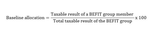 The BEFIT taxable base is allocated to the BEFIT group members under a baseline allocation percentage and is determined as follows: