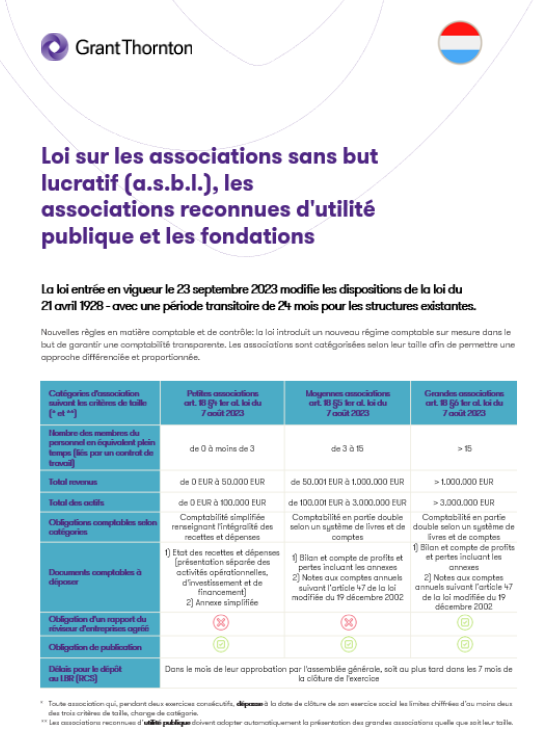 The not for profit organisation (NPO) and charity sector is at the heart of Luxembourg society. Across Luxembourg NPOs are increasingly expected to deliver more, while at the same time facing the pressures of voluntary and government funding. At Grant Thornton Luxembourg, we are dedicated to serving the communities in which we live and work.